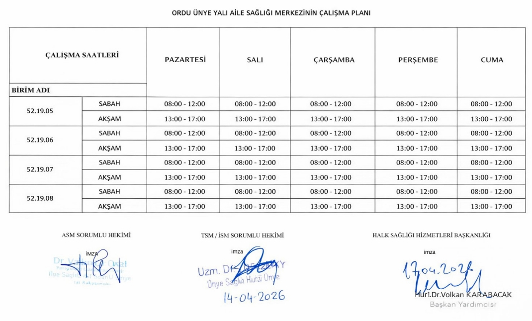 Ordu Halk Sağlığı Müdürlüğü Formları